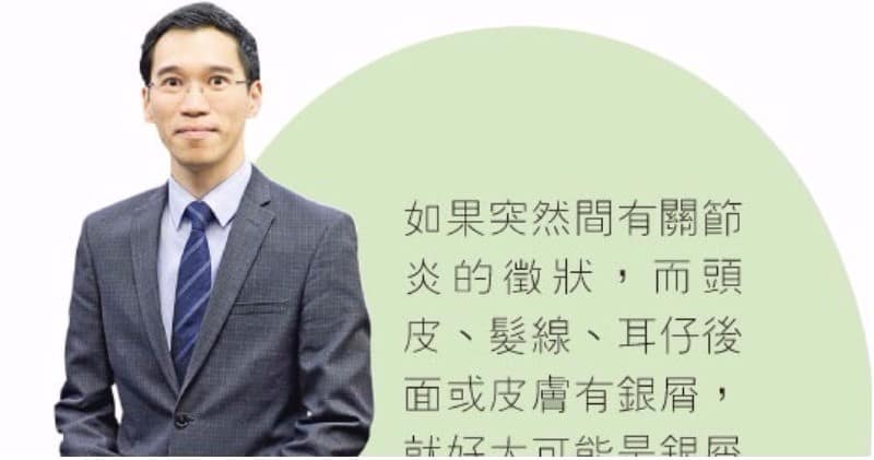 【明報專訊】銀屑病令皮膚出現紅、白屑,但不會嚴重痕癢,當事人未必第一時間察覺患病。余嘉龍指出,銀屑病與遺傳及壓力有關。「如果家族史中有銀屑病患者,病發風險較高。其次,後天環境亦會影響免疫系統失調。」研究顯示,飲食失衡、過量食肉導致腸道益生菌組合差,較容易發病;另外,感染和壓力亦增加銀屑病風險。「所以,注意飲食及減壓,可減少銀屑病發病。」